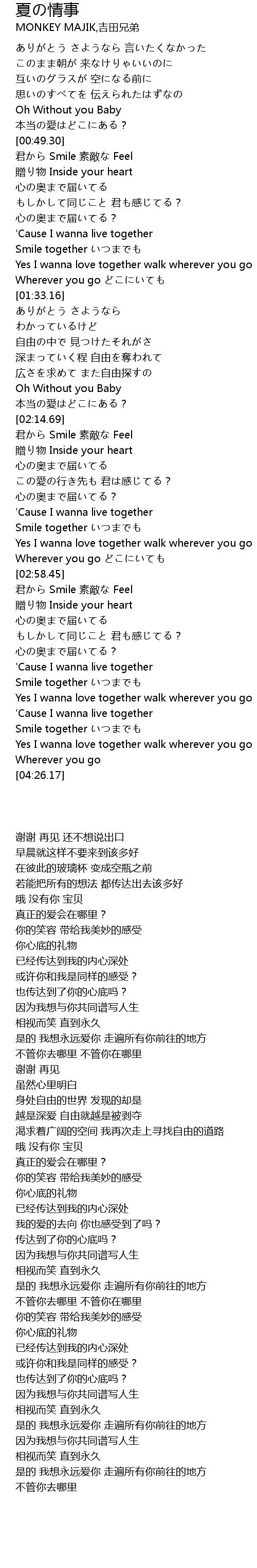 | [04:18.59] | Yes I wanna love together walk wherever you go |