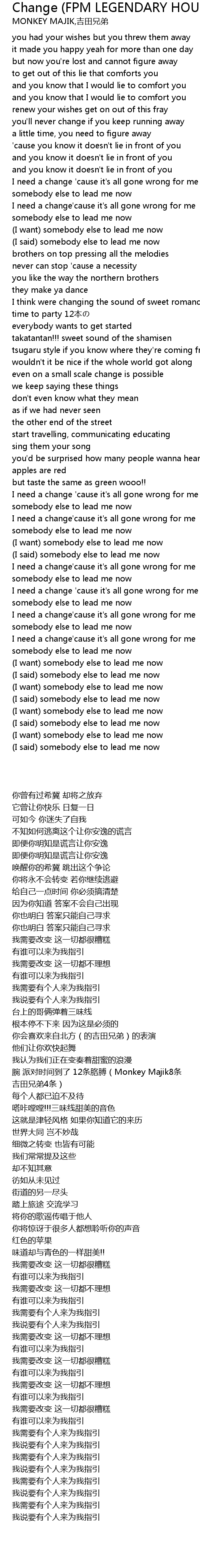 | [04:20.35] | I need a change ' cause it' s all gone wrong for me |