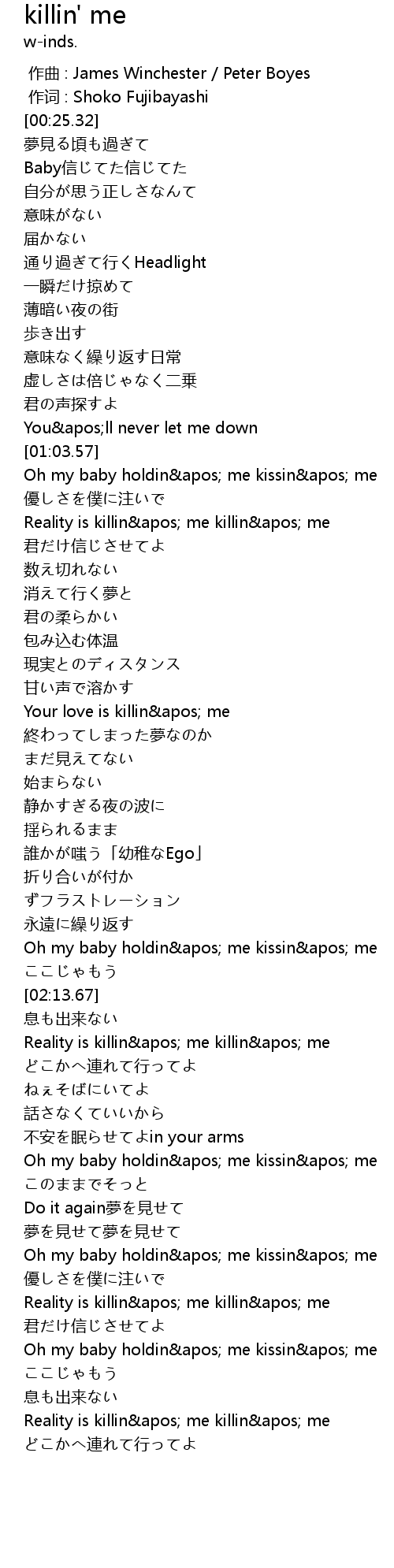 | [03:40.75] | Reality is killin apos me killin apos me |