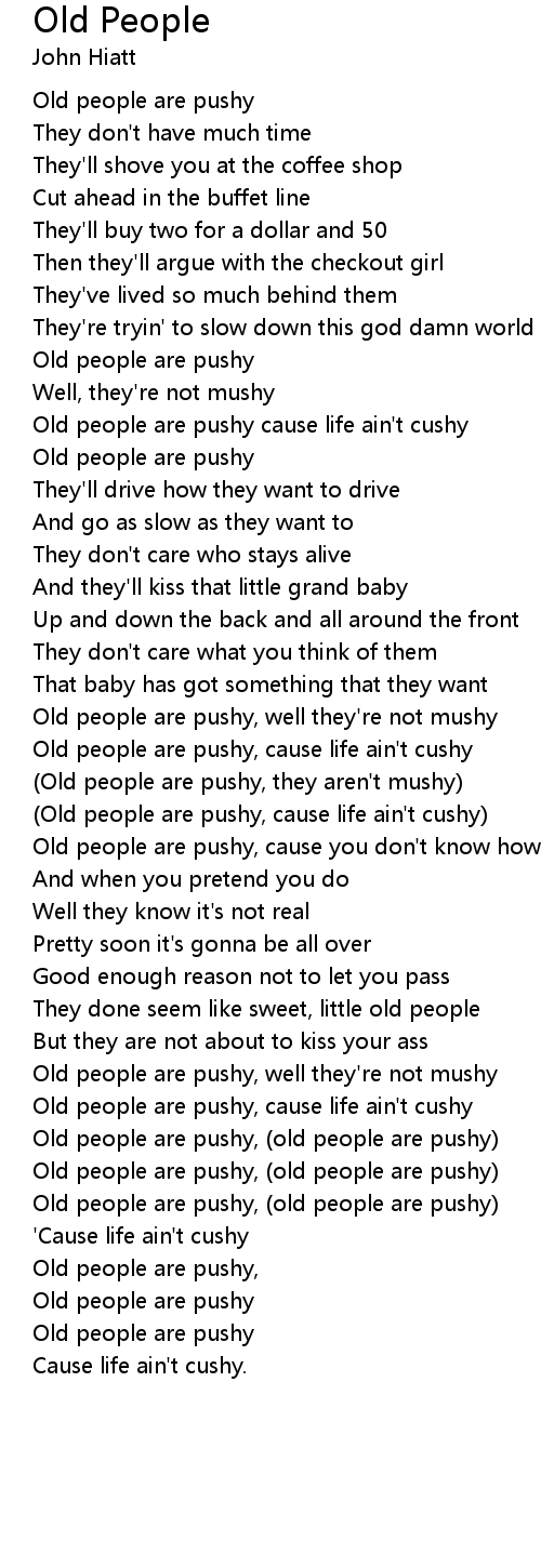 (Old people are pushy, they aren't mushy) |