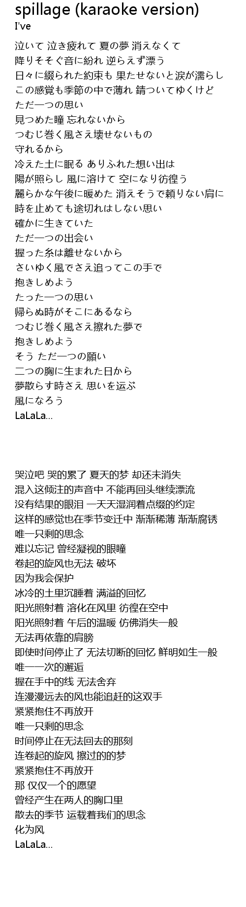 | Song | spillage (karaoke version) |