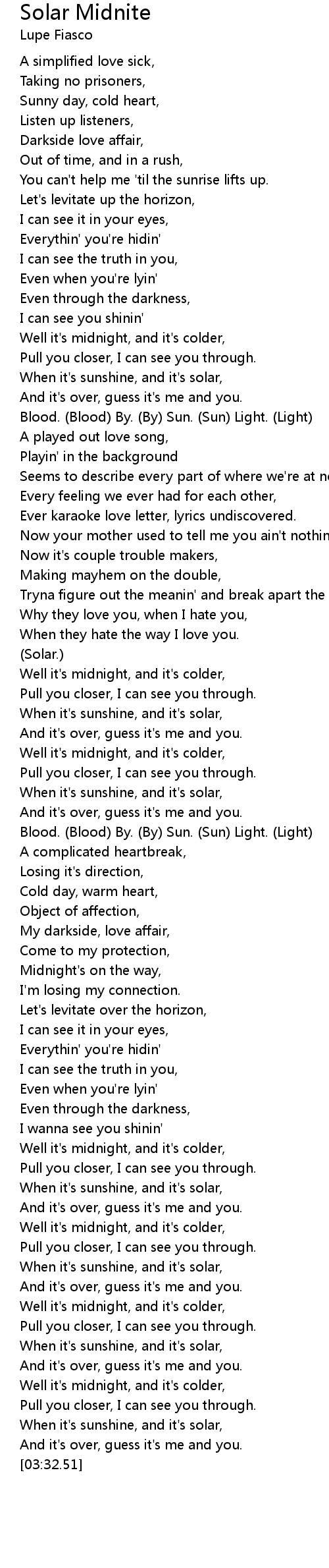 Blood. (Blood) By. (By) Sun. (Sun) Light. (Light) |
