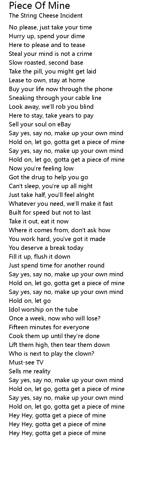 Hold on, let go, gotta get a piece of mine |