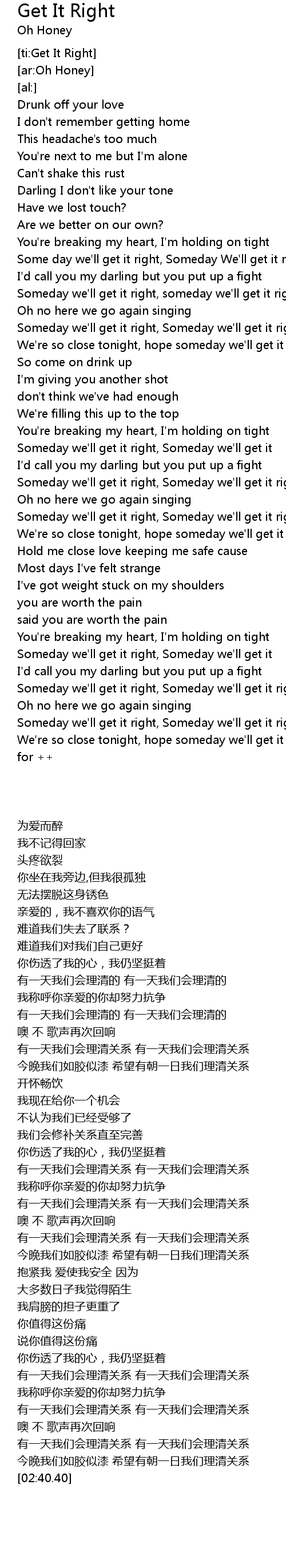 | [00:35.19] | Some day we'll get it right, Someday We'll get it right |