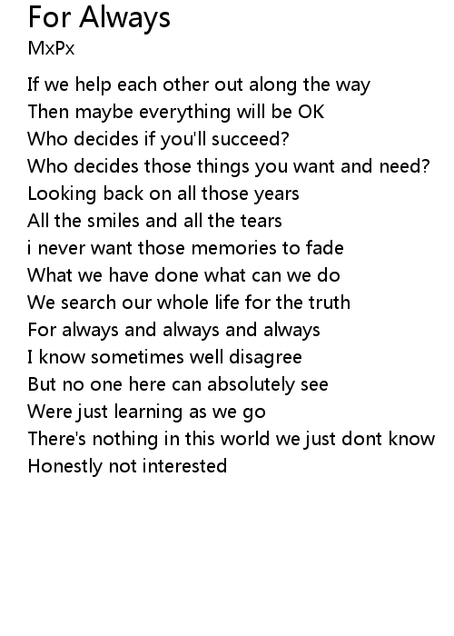 For always and always and always |