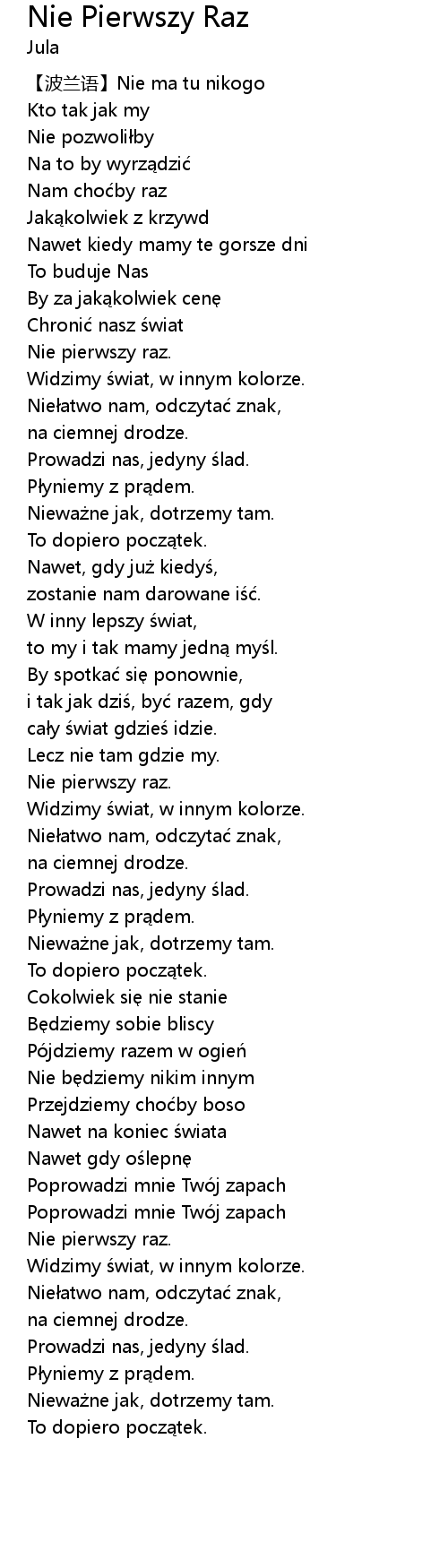 | [00:16.37] | 【波兰语】Nie ma tu nikogo |