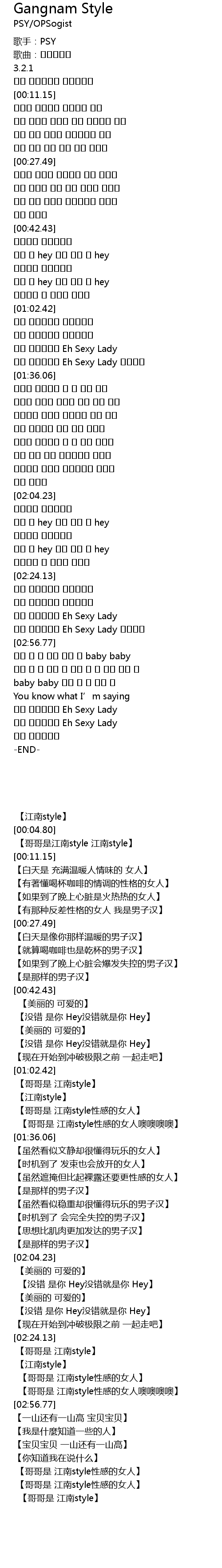 | [02:40.07] | 오빤 강남스타일 Eh Sexy Lady |