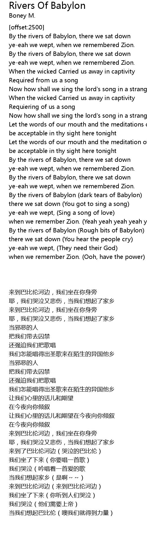 By the rivers of Babylon, there we sat down |