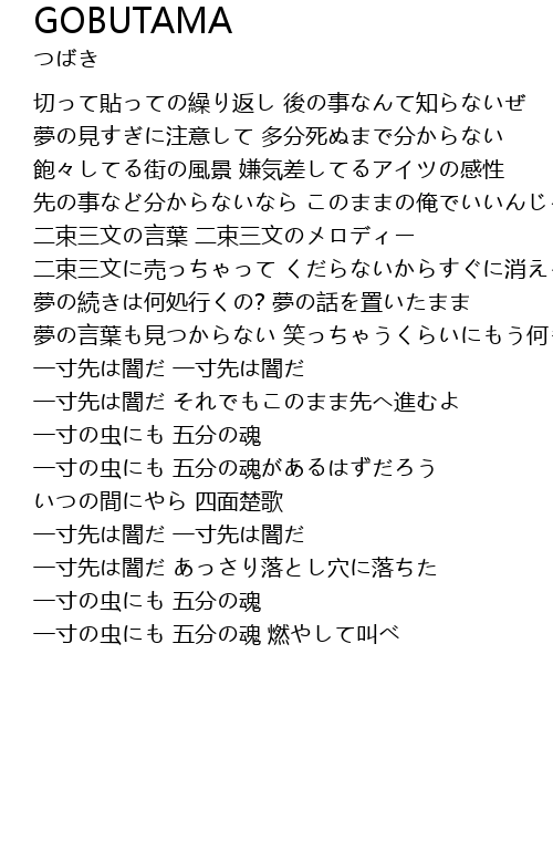 | Song | GOBUTAMA |
