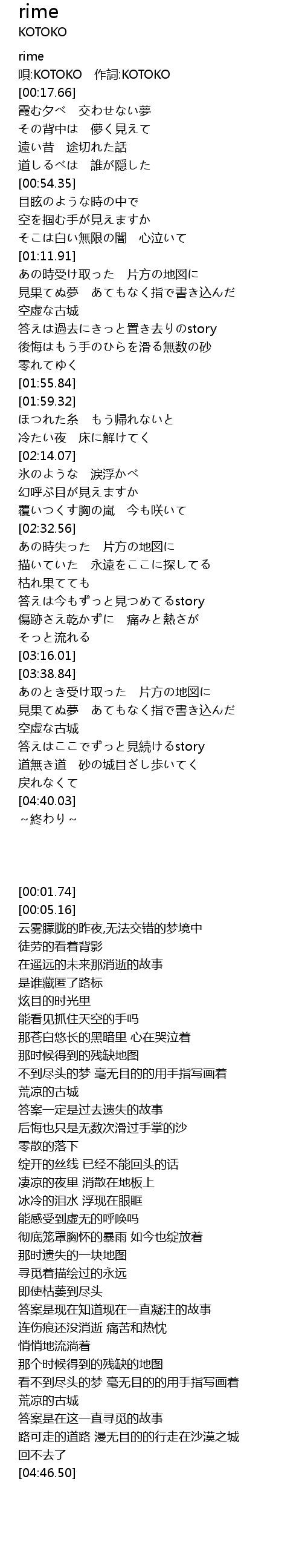 | [00:05.16] | 唄:KOTOKO 作詞:KOTOKO |