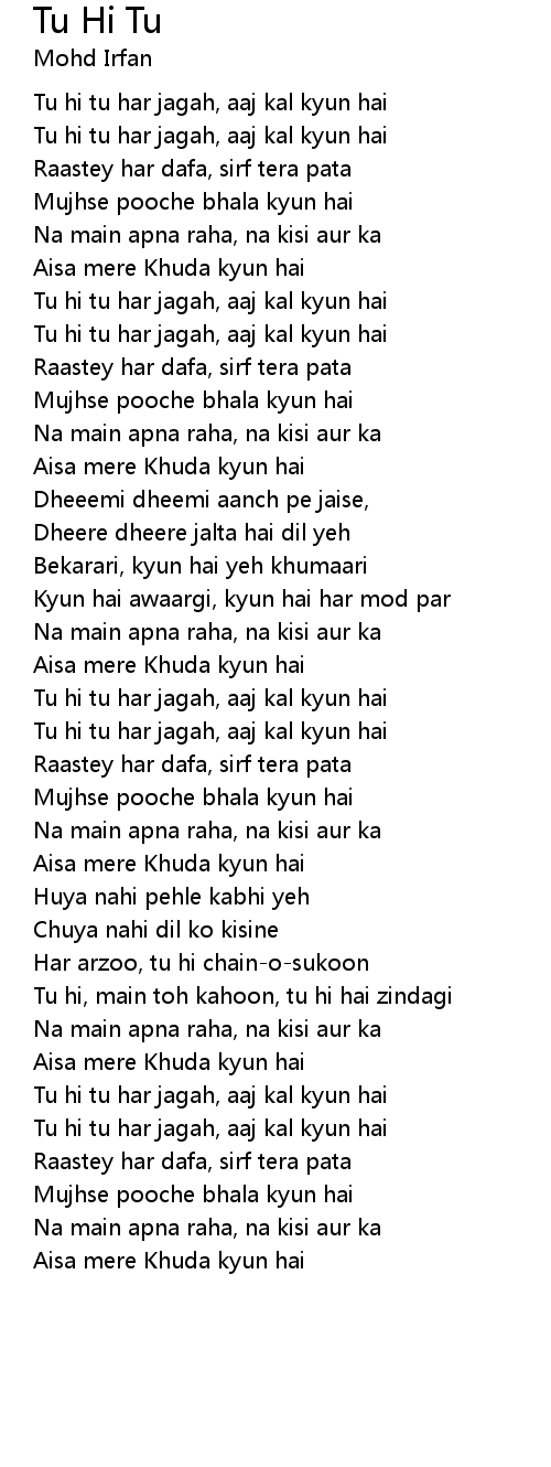 Tu hi tu har jagah, aaj kal kyun hai |