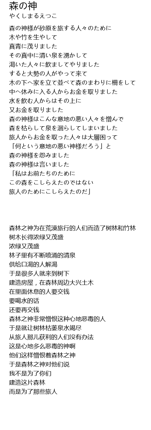 | [00:46.60] | 森の神様はこんな意地の悪い人々を憎んで |