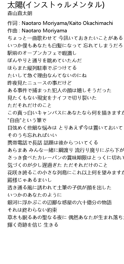 | 作词 : Naotaro Moriyama/Kaito Okachimachi | |