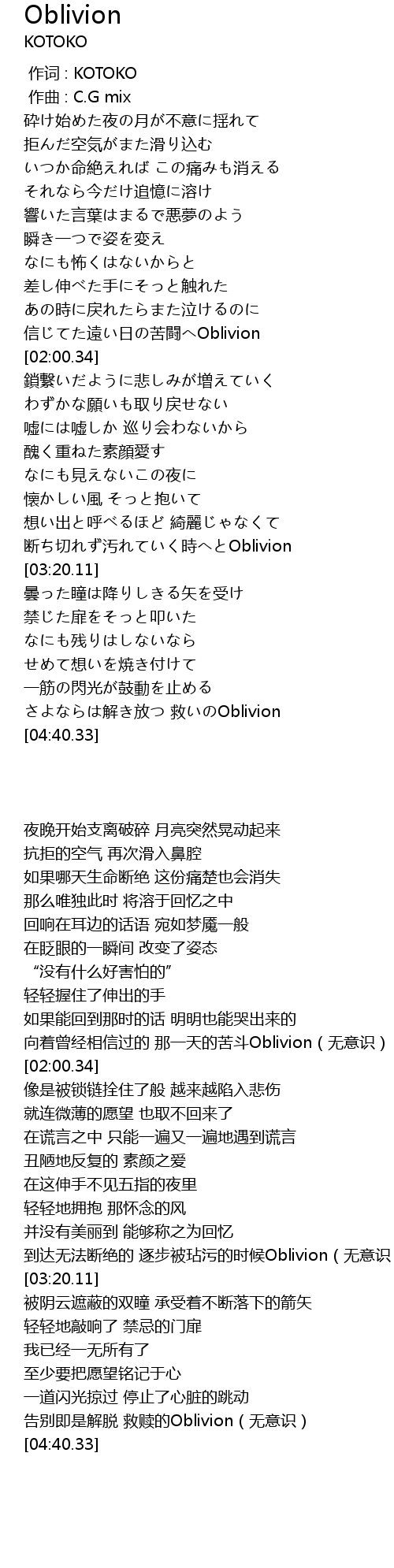 | [03:11.32] | duàn qiè wū shí Oblivion |