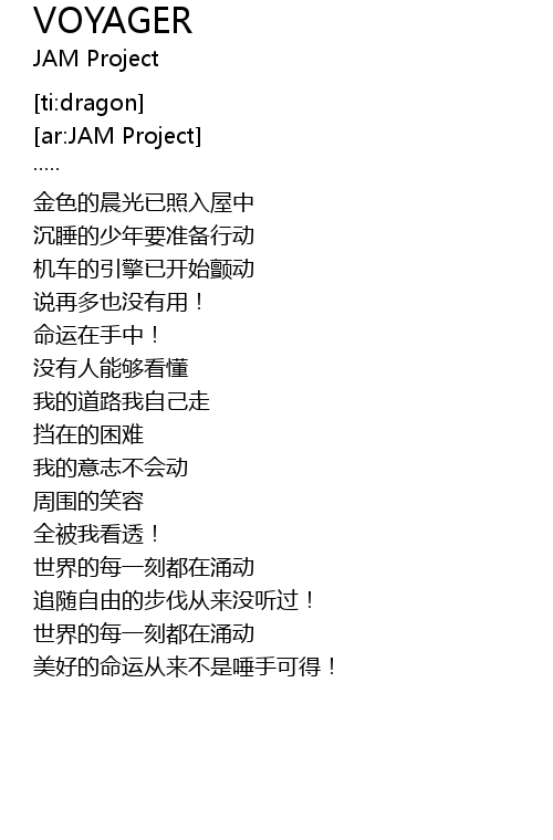 | [01:06.99] | 美好的命运从来不是唾手可得! |