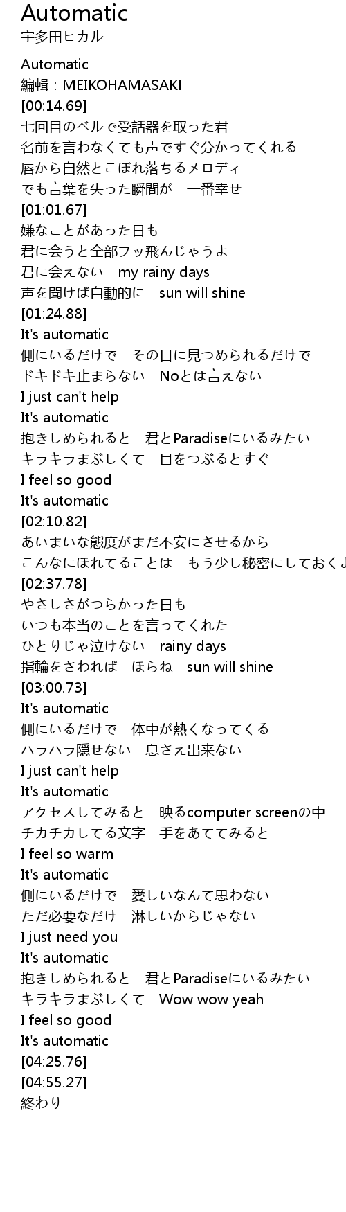 | [00:12.27] | 編輯:MEIKOHAMASAKI |
