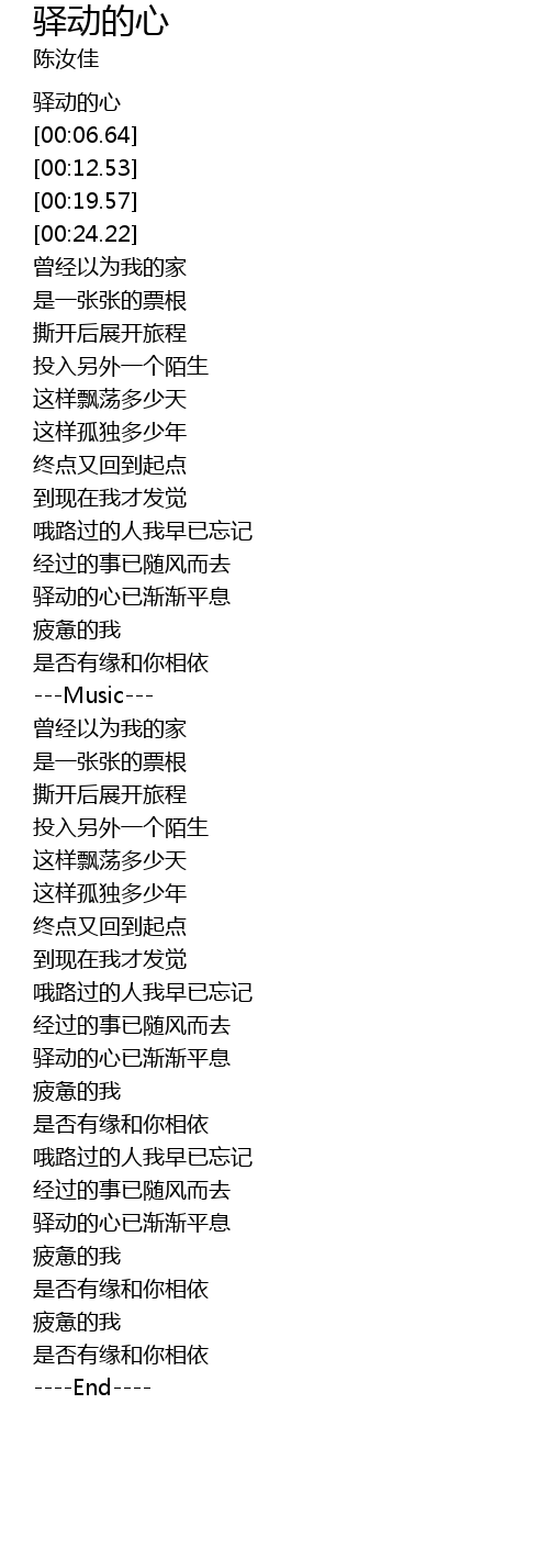 | [00:03.64] | 驿动的心 |