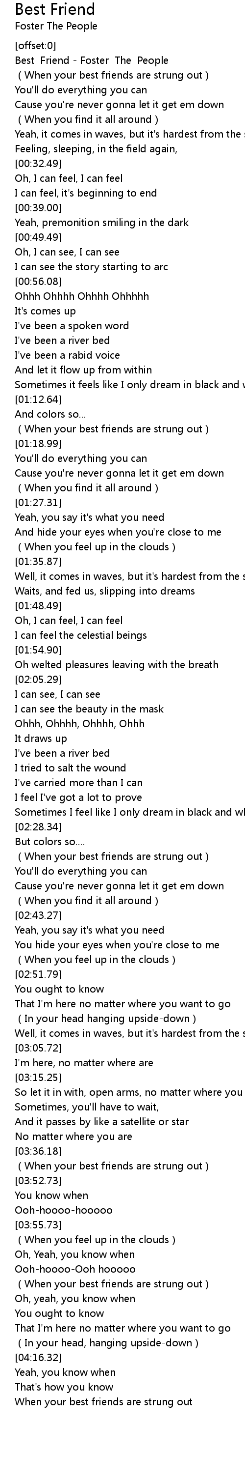 | [00:00.60] | Best Friend - Foster The People |