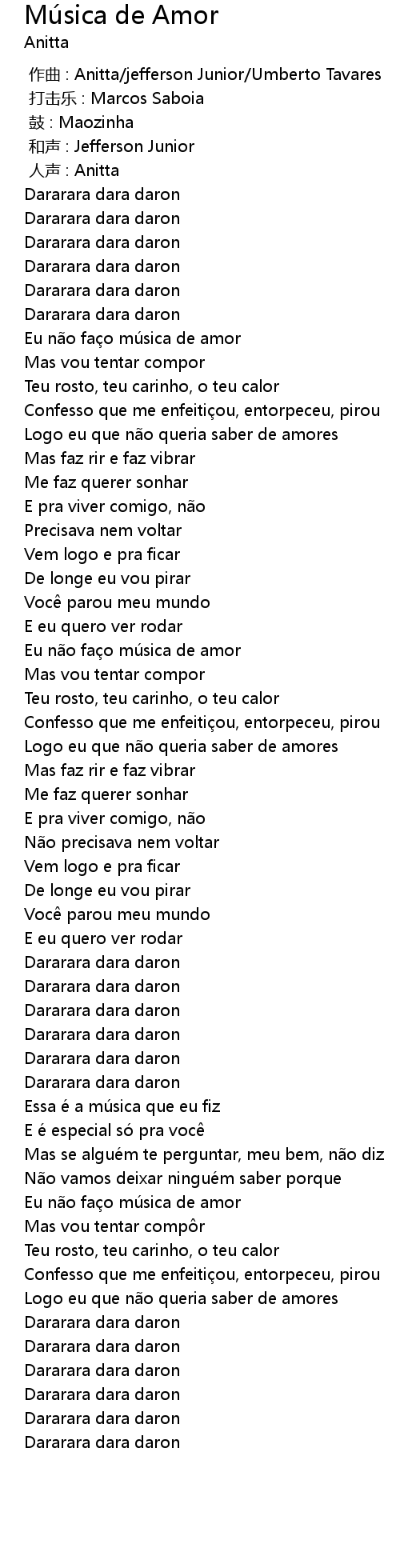 | [00:00.000] | zuò qǔ : Anitta jefferson Junior Umberto Tavares |