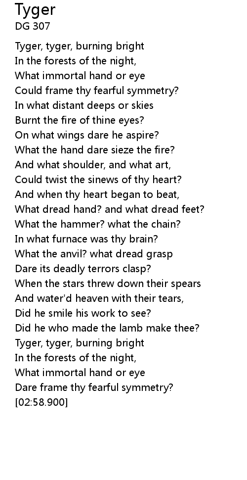 | [02:26.160] | Tyger, tyger, burning bright |