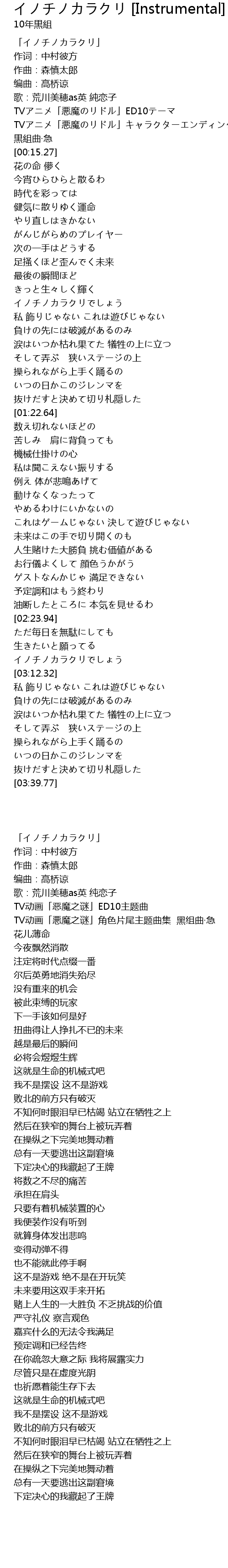 | [00:00.00] | 「イノチノカラクリ」 |