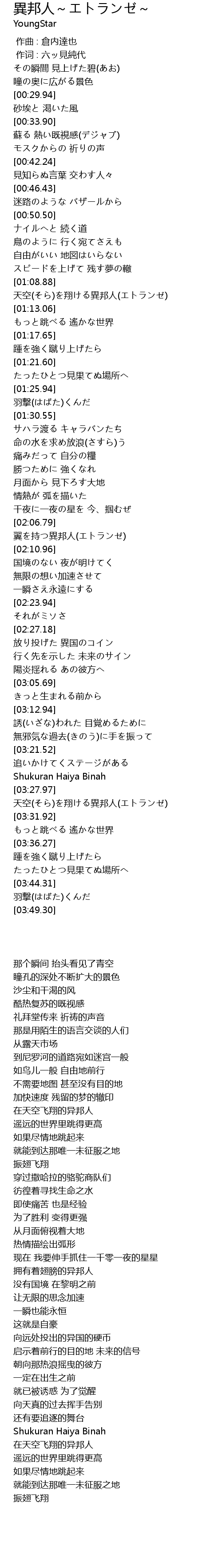 | [01:10.01] | 天空(そら)を翔ける異邦人(エトランゼ) |