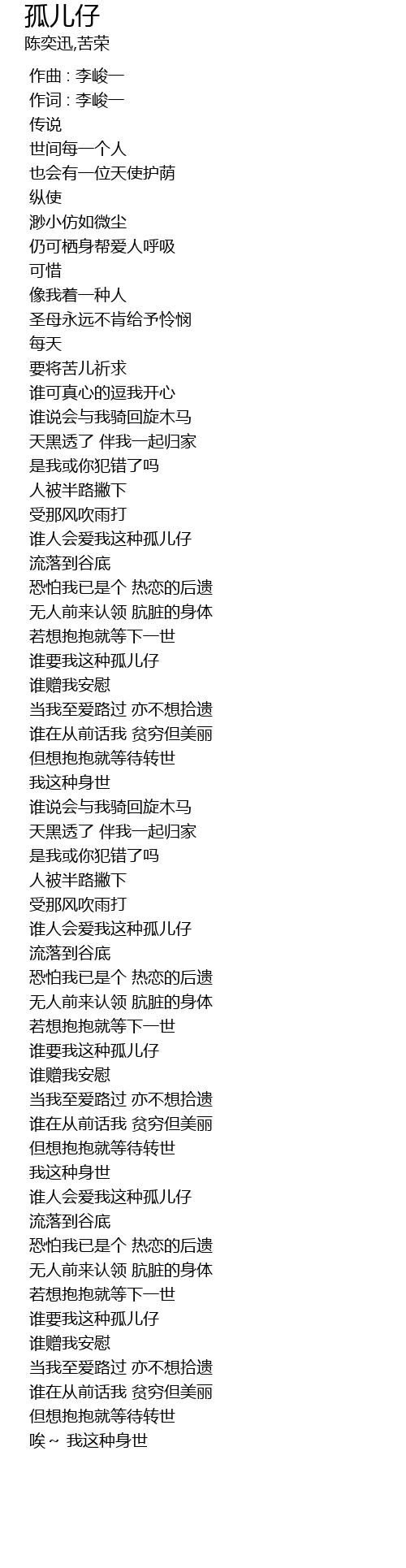 | [01:20.180] | 谁要我这种孤儿仔 |
