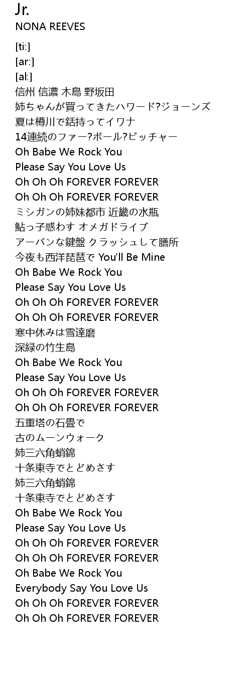 | [00:59.25] | Oh Oh Oh FOREVER FOREVER |