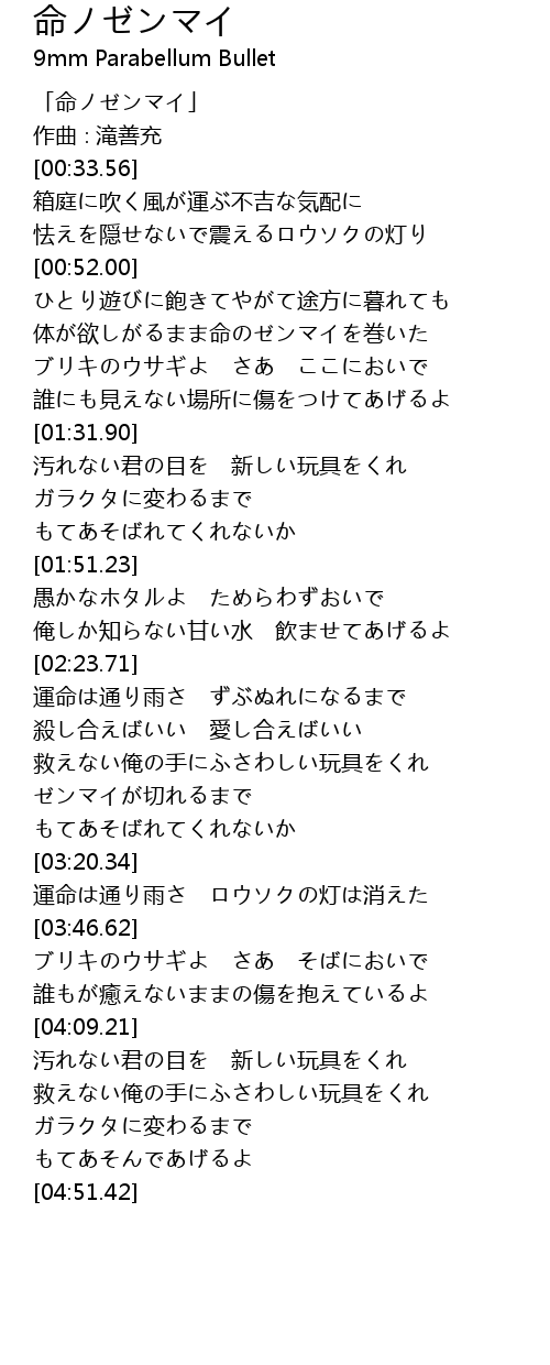 | [00:01.56] | 「命ノゼンマイ」 |