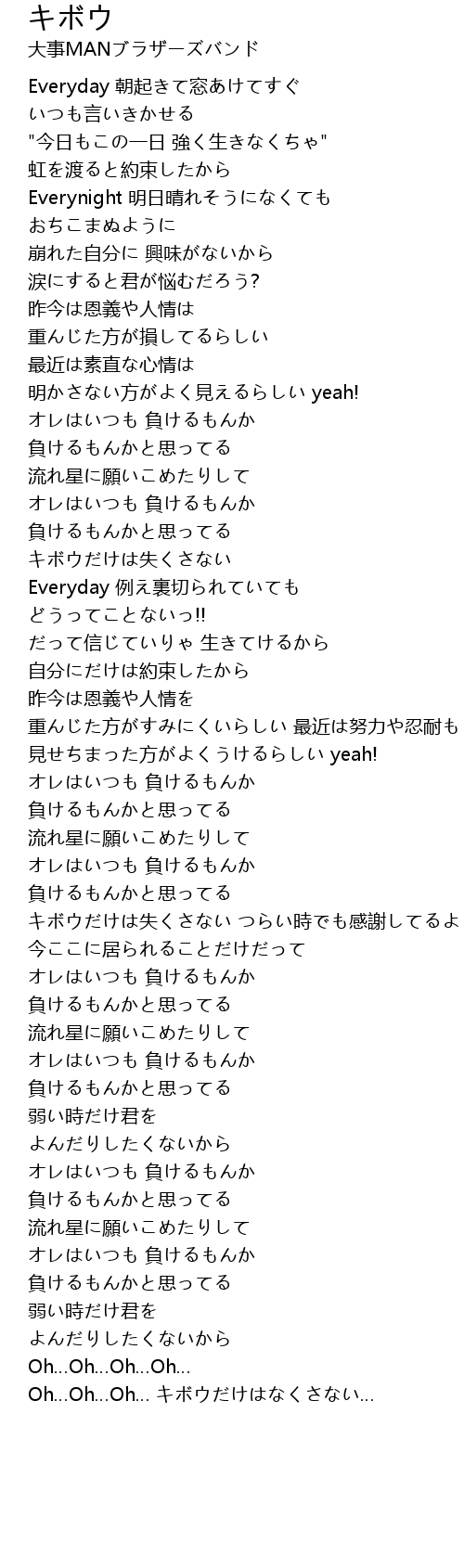 | キボウだけは失くさない つらい時でも感謝してるよ | |