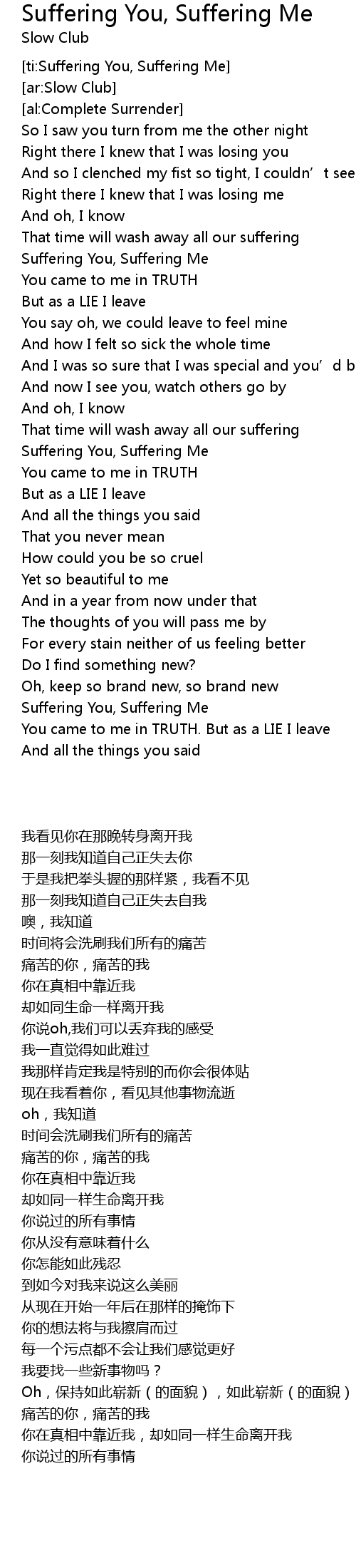 | [02:51.93] | Suffering You, Suffering Me |