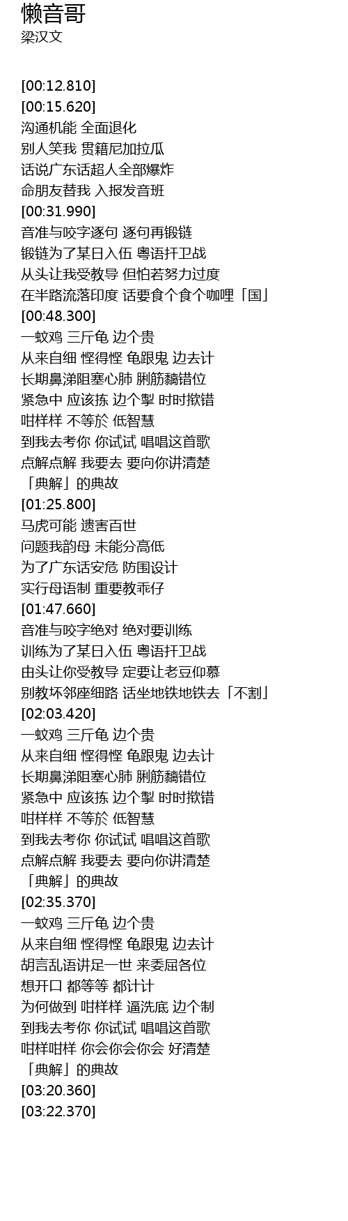 | [02:55.530] | 胡言乱语讲足一世 来委屈各位 |