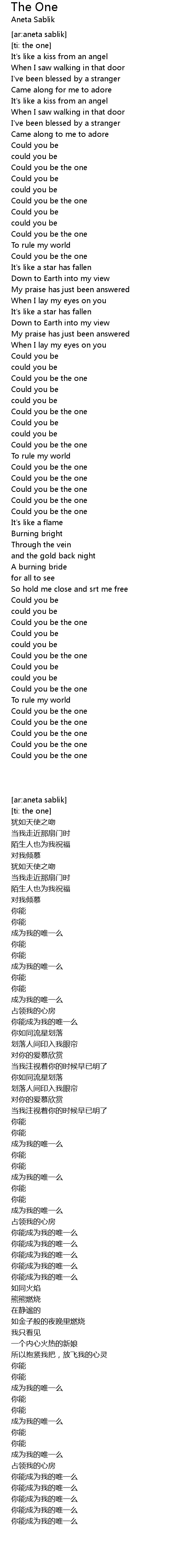 [ti: the one]