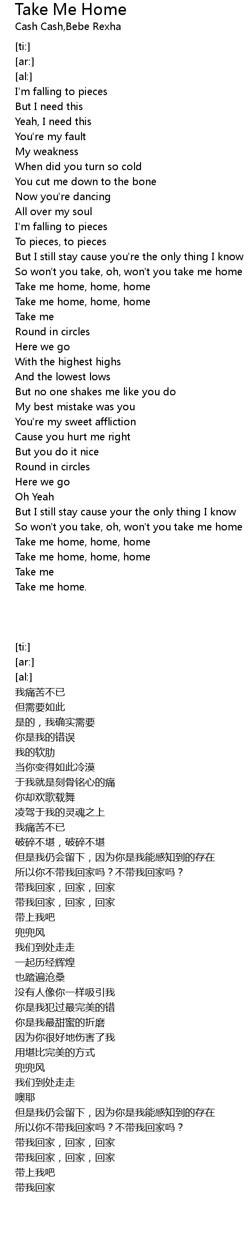 Take me home, home, home |