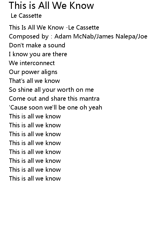 | [00:00.259] | This Is All We Know -Le Cassette |