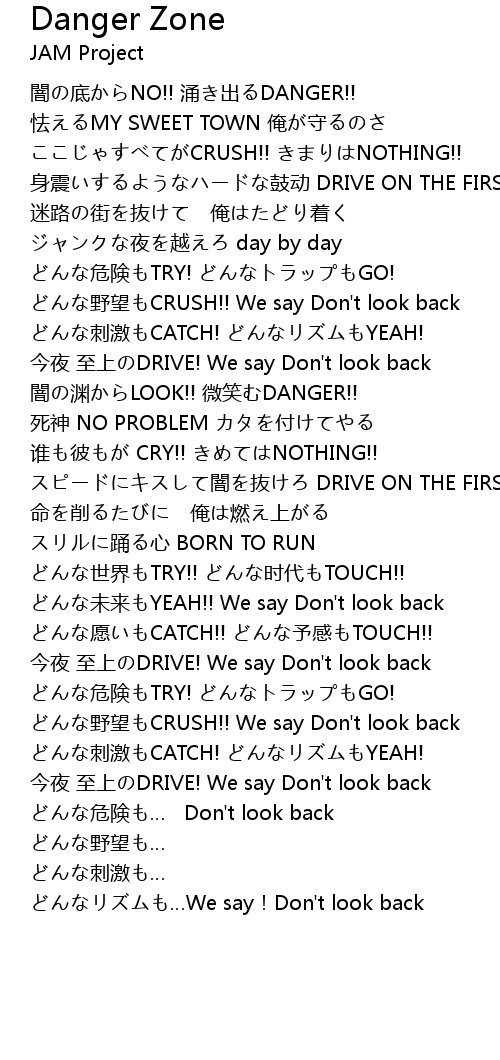 | [00:46.00] | àn dǐ NO!! yǒng chū DANGER!! |