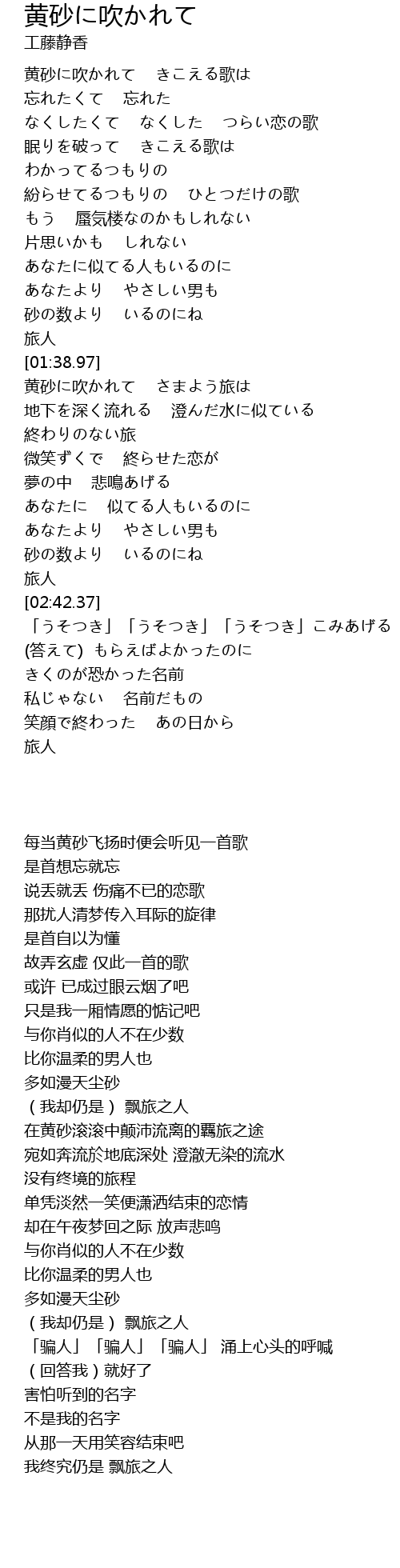 | [01:43.49] | 黄砂に吹かれて さまよう旅は |