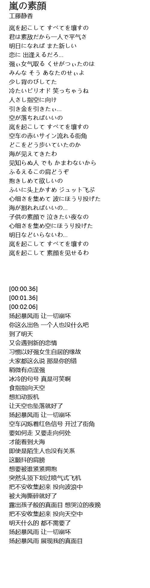 | [01:13.36] | 岚を起こして すべてを壤すの |