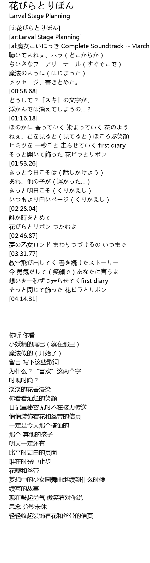 | [03:58.93] | そっと閉じて飾った 花ビラとリボン |