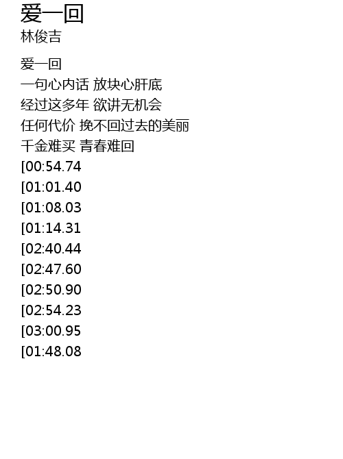 | [03:27.73][03:00.95][01:40.98] | 啊~~ 一生只要好好爱一回 |