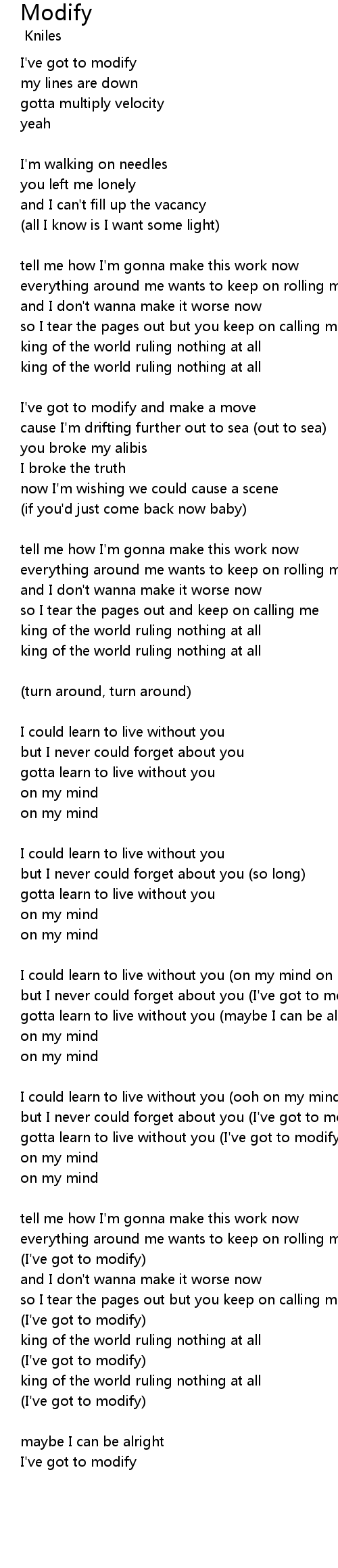 gotta learn to live without you (I've got to modify) |