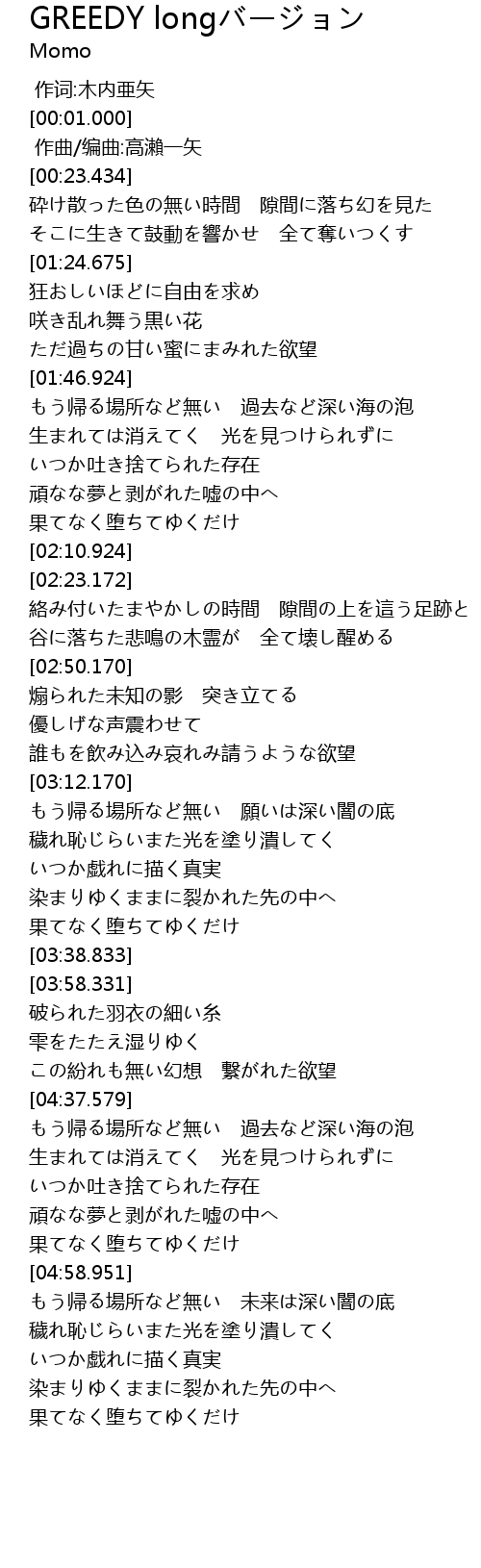 | [04:26.331] | この紛れも無い幻想 繋がれた欲望 |