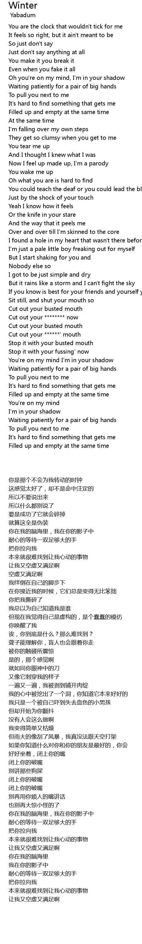 You are the clock that wouldn't tick for me |