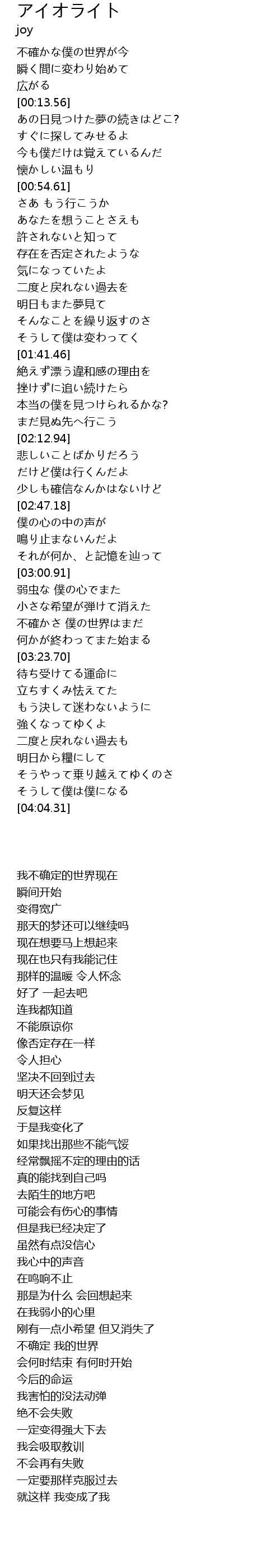 | [03:12.25] | 不確かさ 僕の世界はまだ |