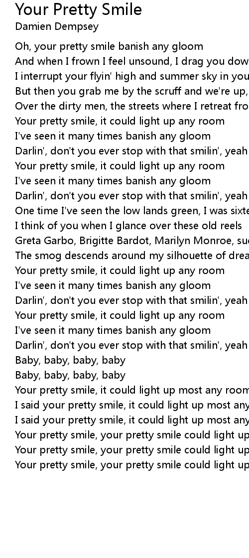 Your pretty smile, your pretty smile could light up most any room |