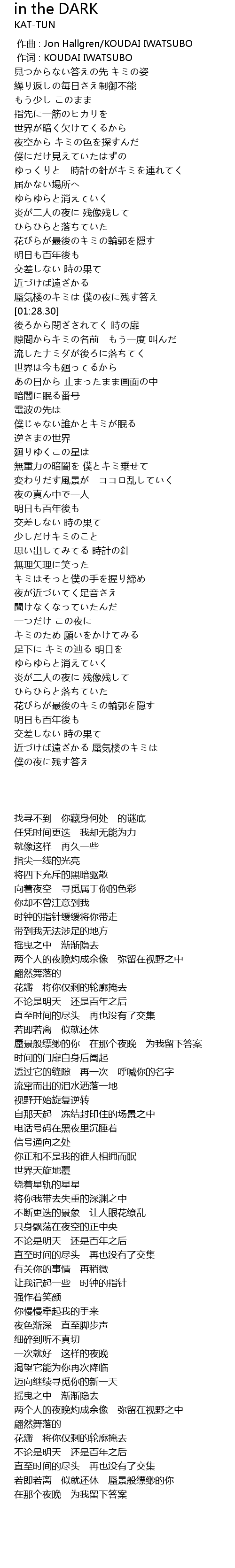 | [00:01.00] | 作词 : KOUDAI IWATSUBO |