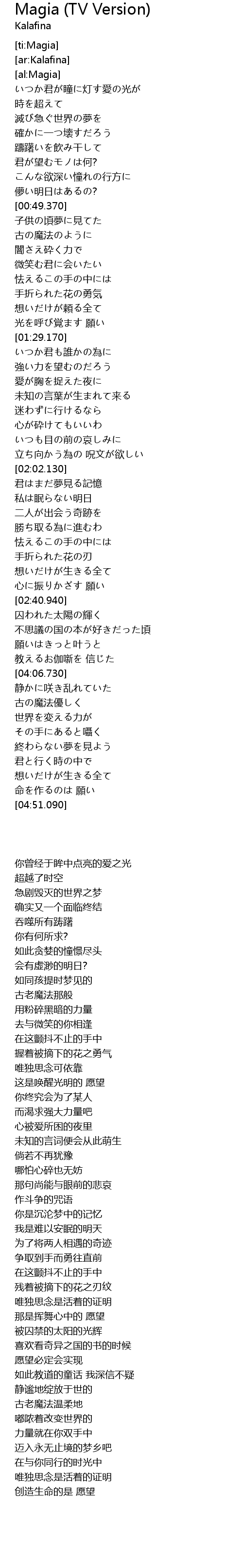 | [01:56.900] | 立ち向かう為の 呪文が欲しい |