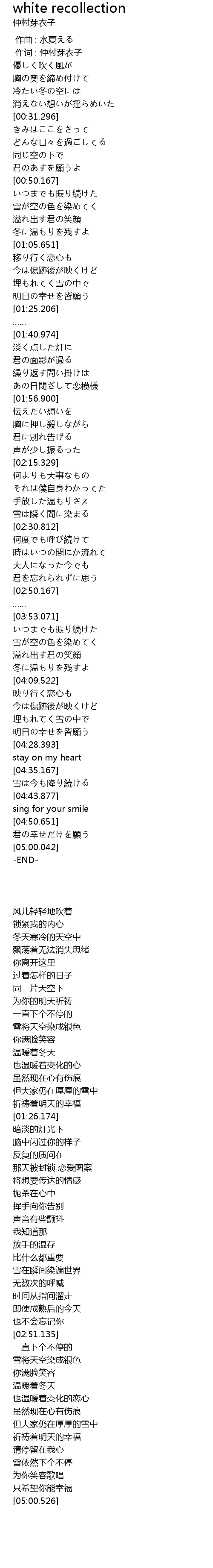 | [00:01.00] | 作词 : 仲村芽衣子 |