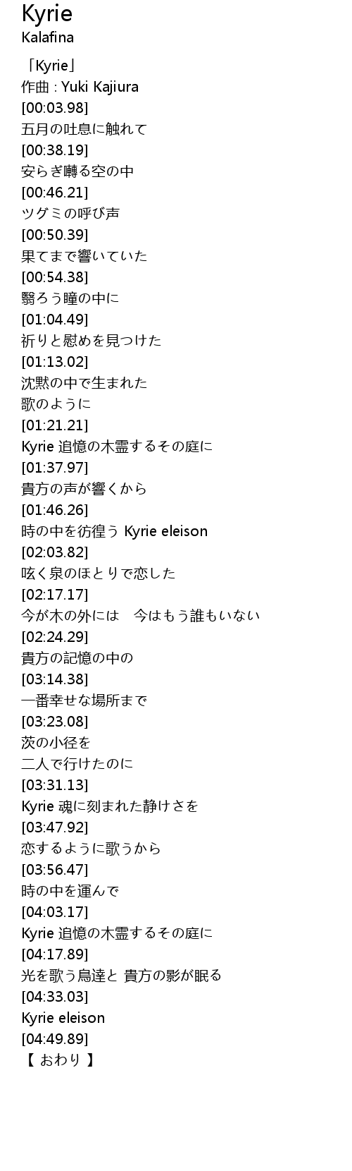 | [00:00.48] | 「Kyrie」 |