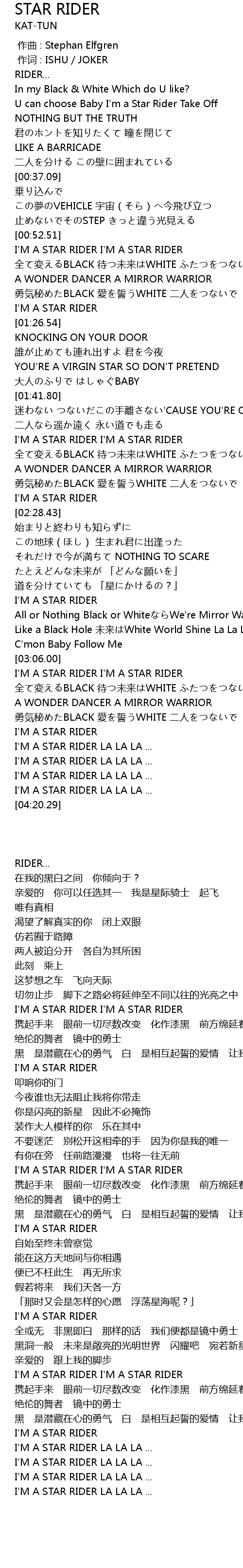 | [03:34.99] | I' M A STAR RIDER I' M A STAR RIDER |